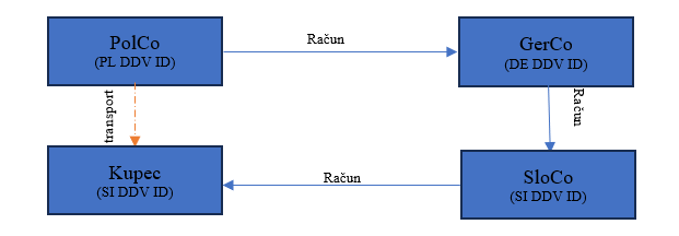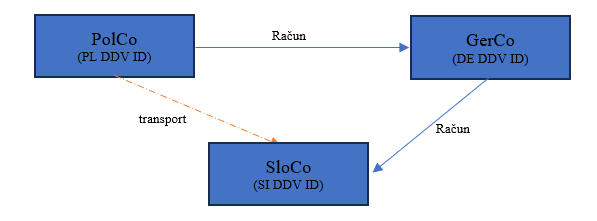 1. PolCo izda račun pod svojo PL DDV ID številko družbi GerCo, ki deluje kot posrednik in uporablja svojo DE DDV ID številko v konkretnem primeru,